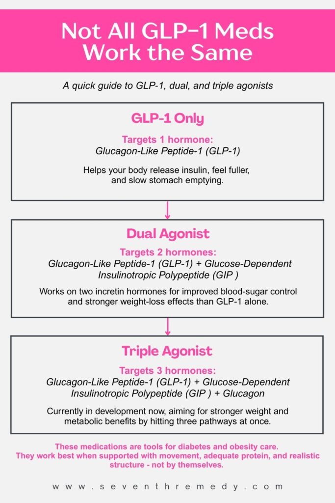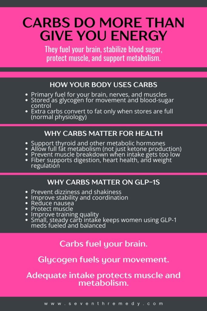 These macro splits are set for people using GLP-1 medications or going through weight loss. Protein is higher to help protect lean muscle and support fullness. Fats are set at a steady level to support hormones and absorption of vitamins. Carbohydrates stay high enough to support energy and movement. This is a starting point, not a prescription. Your medical team may adjust your needs based on your health, labs, and medication plan.